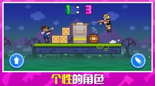 枪炮奇兵一款非常好玩有趣的对决射击游戏,作为最勇敢的枪手,你将参加更多高手的随机战斗,玩家能够使用两个按钮进行战斗,一键跳跃,一键射击。还提供了同屏对抗的游玩模式,你的对手将会是各种各样职业的人,你必须打败他们完成你的任务,每一个阵营的士兵或者勇士都有他们的特殊技能可以克敌制胜!操作起来简单又有趣,玩起来让人爱不释手!感兴趣的小伙伴们快来下载体验吧!