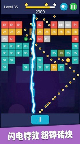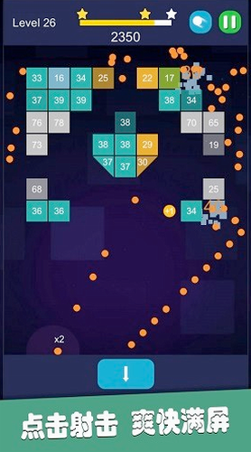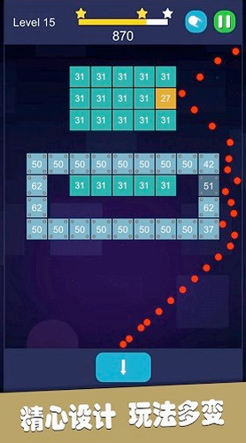 3、游戏的玩法十分简单,玩家只需要点击屏幕,左右滑动,瞄准砖块后,发射即可。