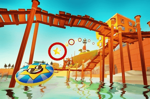 3、拖动飞盘向前飞出去,控制飞盘移动,拾取沿途的星星。