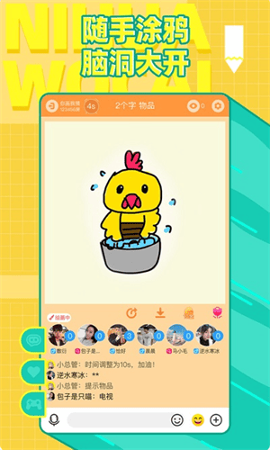 你画我猜2026官网版是一款非常好玩的手机休闲益智类社交游戏,超级放松的小游戏,可以调节聚会的氛围,缓解尴尬带来快乐,该游戏玩法比较简单,社交性比较强,智能匹配玩家一起玩耍互动,可玩性很强,比拼你的想象力,爆笑不尬场。方便朋友之间交流的小游戏,真正的老少皆宜的游戏,还能充分调动玩家的思维创造能力。90秒已经不能释放你全部的洪荒之力?加时功能满足你,大神请允许我献上膝盖!画久了想放松?还有轻松愉快双人小PK,帮你调适心情,喜欢的朋友们,欢迎大家来下载试玩哦!