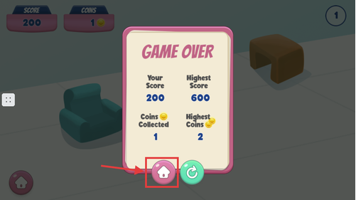 4、游戏结束后点击粉色房子图标返回主界面,方便重新开始或查看已解锁内容与设置信息。