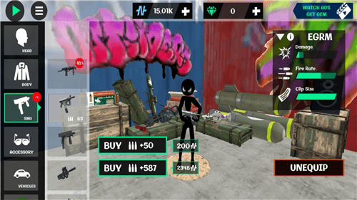 4、收集摧毁你的敌人,完成火柴人绳索英雄2任务来获得奖励,然后用它来买最好的武器。