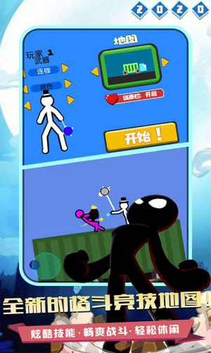 双人火柴人对决破解版下载安装是一款非常好玩的创意多人对战游戏。玩家可以控制火柴人进行战斗,在多种战斗模式中感受不同的游戏体验,还可以解锁新武器进行实时对战。多人生存之战唯有一人能取得至高无上的荣耀,在游戏中积极进行战斗吧。游戏集合了火柴人的技能与装备,通过收集道具提升角色实力,并且支持本地双打和与陌生人、朋友进行比赛。玩家们进入游戏之中可以选择自己的火柴人角色,加入到各种的格斗挑战之中,面对不同的对手,可以很好的展现自己的格斗水平,见招拆招灵活格斗,敌人们的实力会越来越强大,对于每位玩家们来说考验也会更大!