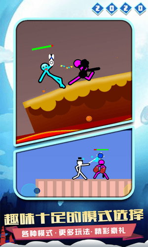 2.格斗的场面非常的火爆,有经典的火柴人的形象,还有很多的挑战模式,非常的精彩。