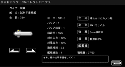 6、宇宙飞船船坞:装备上刚才开发的主炮、弹幕、机关,舰载机选择宇宙作业艇,自选(宇宙作业艇)也可以出击,但太弱了最好别这么选。